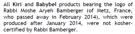 Babybel Posthume. Démenti Kashrus Monthly